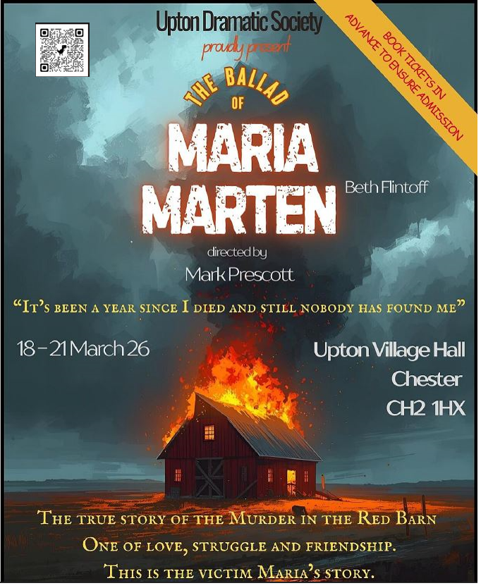 Latest news March production 18-21st March 2026 Click here or scan the QR code for tickets. Book in advance to ensure admission.