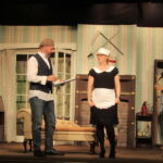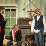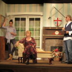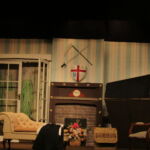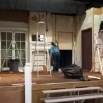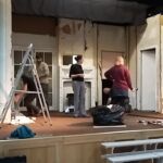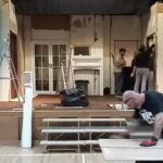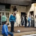 We had a fantastic weekend, putting together the set for our latest production and you will spot members of the cast and crew “doing their bit” in the pictures below. There was a great team spirit and a real sense of everyone pulling together, including everyone sitting down to beans on toast for lunch (kindly provided by Ian and Glenys, with Katie as chef).